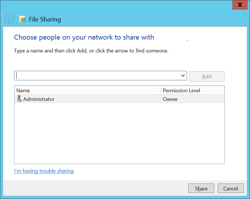 First, verify NTFS and share permissions on the target folder. For this, right click on the folder where the mailbox is exported, then click on Properties, go to the Sharing tab and click on Share button to share the permissions.